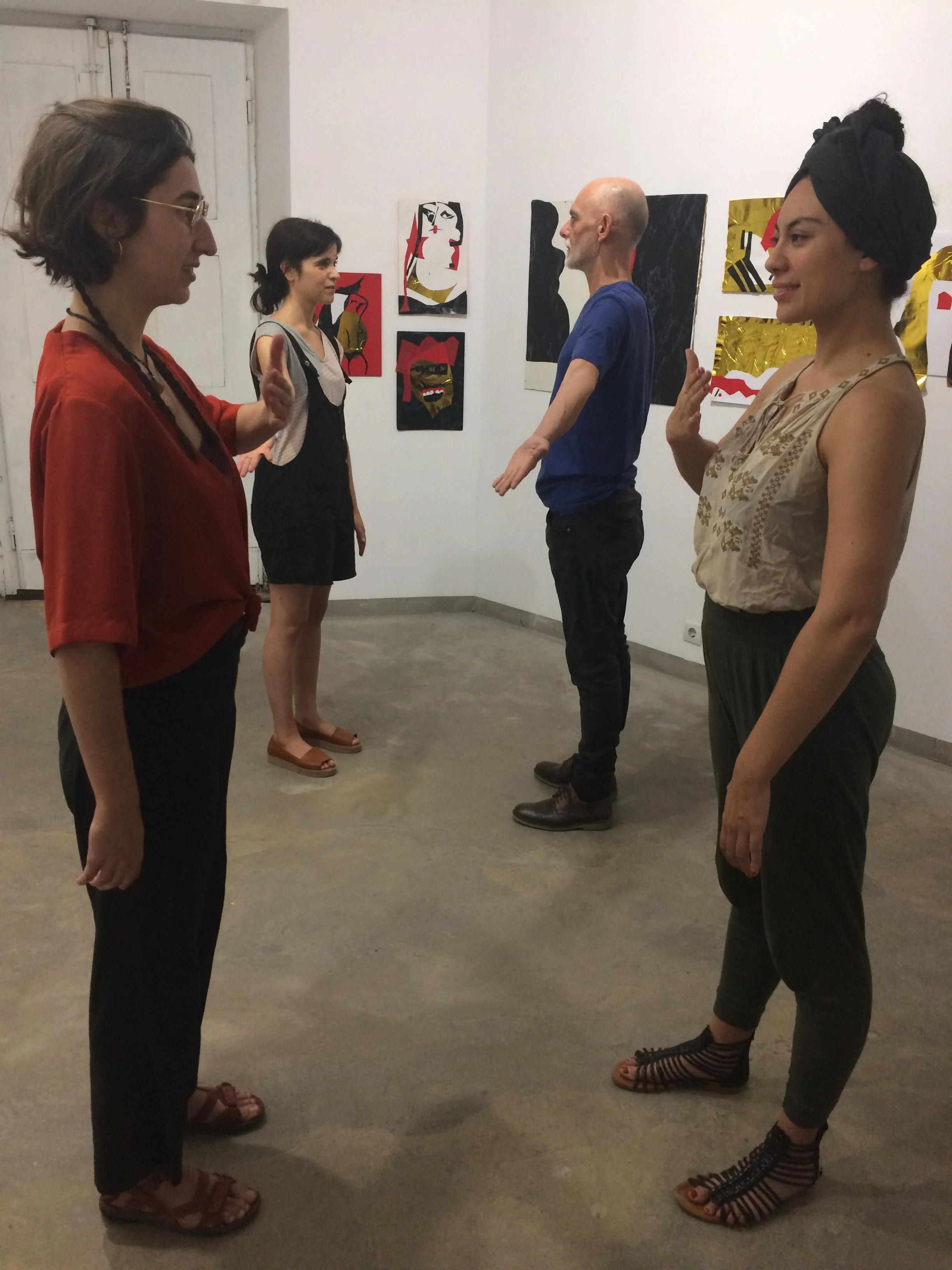 Muyassar Kurdi’s workshop explores the relationship between body and voice, centering spontaneity, movement, and soul-generated theatrics. Through deep listening and improvisational exercises, participants are invited into a space of heightened awareness and raw expression. The work draws on trust, stillness, and intensity — where sound, image, and physical presence unfold in real time.